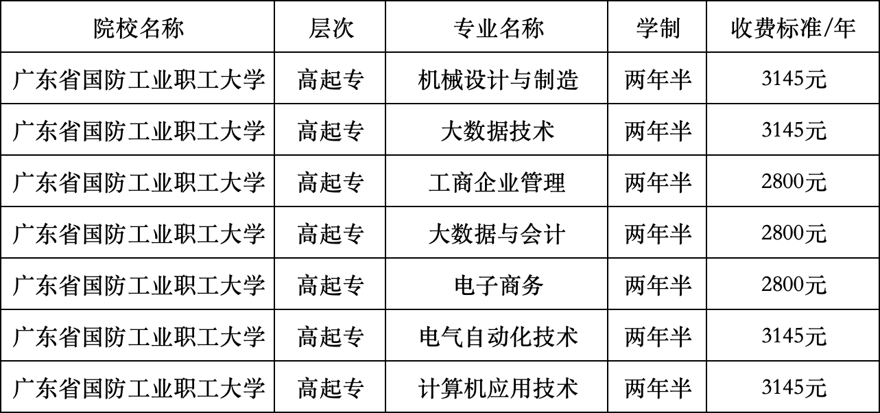 广东省国防工业职工大学继续教育学院成人高考招生简章