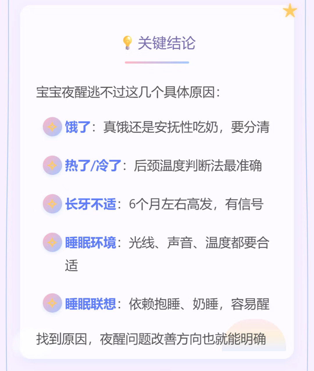 其实,宝宝的每一次夜醒,都不是无缘无故的,他们只是在用自己唯一的方式,向最信赖的妈妈求助。很多时候,我们把问题想得太复杂了,不妨静下心来,像剥洋葱一样,一层层看看背后的原因,或许答案就藏在最日常的细节里。