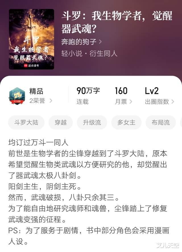 小说看着也是多女主,斗罗同人我不咋看,起点上的斗罗同人市场也比以前要大的,写到万订的也有好些了。