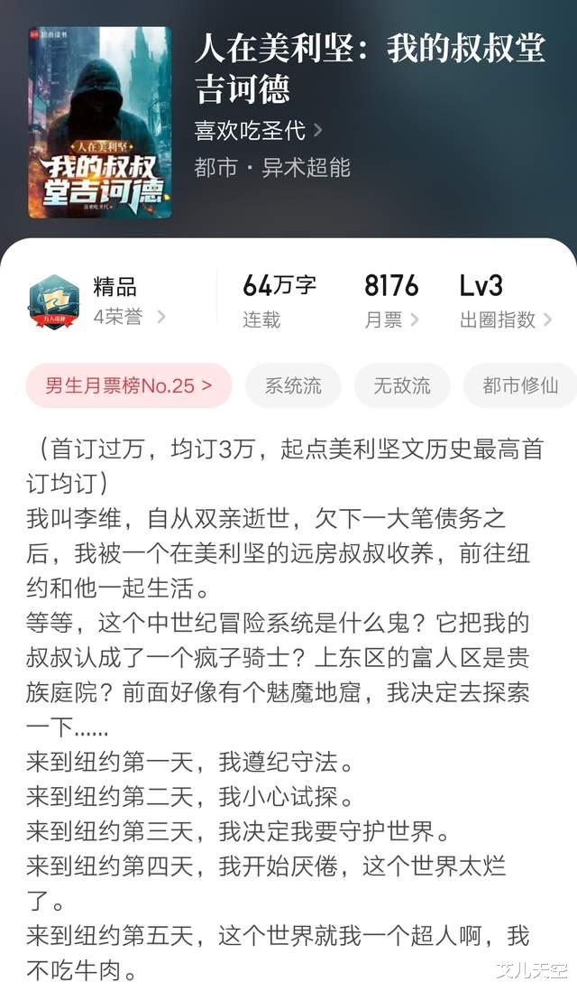 1、《人在美利坚:我的叔叔堂吉诃德》64万字连载中