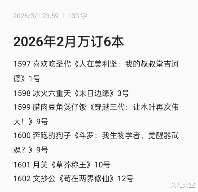 当然春节已经过去,三月份看着已经回暖,第一周就已经有七本万订了。还是具体来看看二月份的万订作品情况。