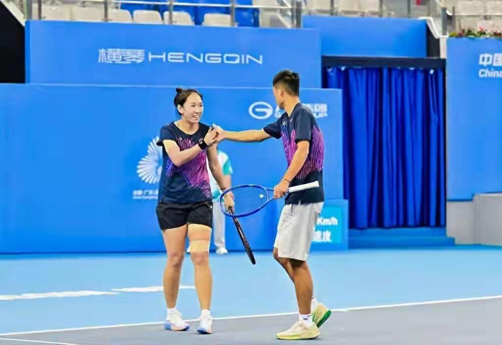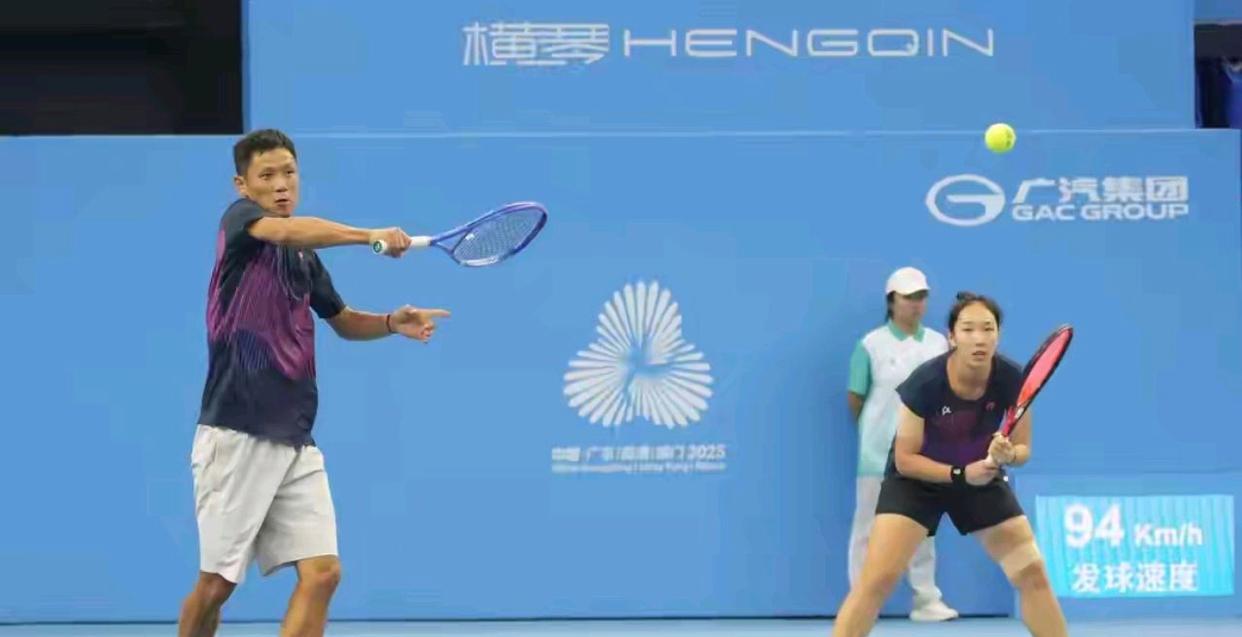 十二月的横琴国际网球中心,冬日的阳光为蓝色球场镀上一层温暖的金边。听障组混合双打决赛的场地上,浙江队选手汤学良与孙岩正以默契的配合完成每一次击球。这对来自浙江的"夫妻档",用一场5:3、4:1的胜利,将第十二届全国残运会特奥会网球比赛的混双金牌收入囊中。