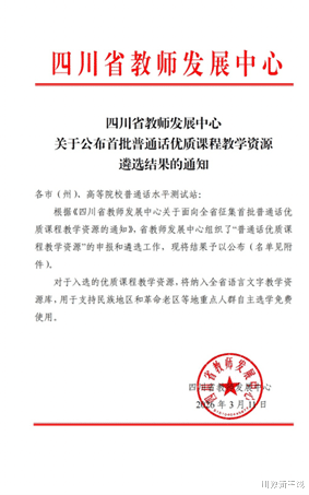 近日,四川省教师发展中心公布了四川省首批普通话优质课程教学资源遴选结果,成都银杏酒店管理学院教师李延美老师申报主讲的《工程建设场景普通话应用微课程》成功入选。该课程将被纳入全省语言文字教学资源库,为民族地区和革命老区重点人群提供免费自主选学服务,这一成果也充分彰显了该校在普通话教学创新与职业语言应用方面的扎实办学实力与突出教学成果。