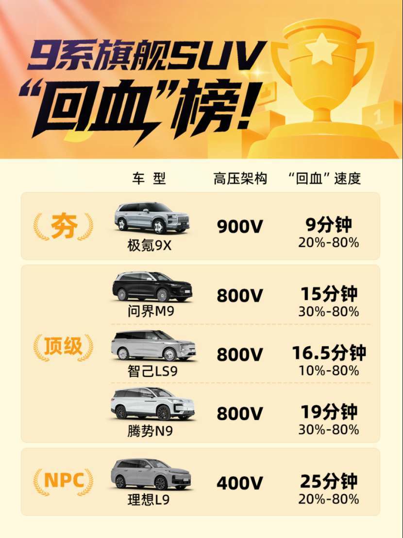 其他9字辈还在等“回血”,900V加持的极氪9X已充好出发~