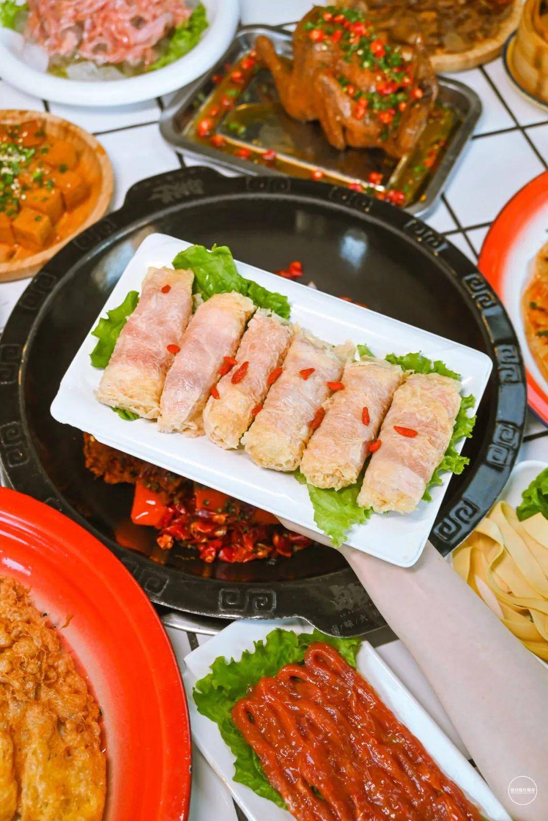 卤虾尾拌火鸡面、裤带土豆片、虾肉金丝卷、柿柿如意、火锅水晶包......