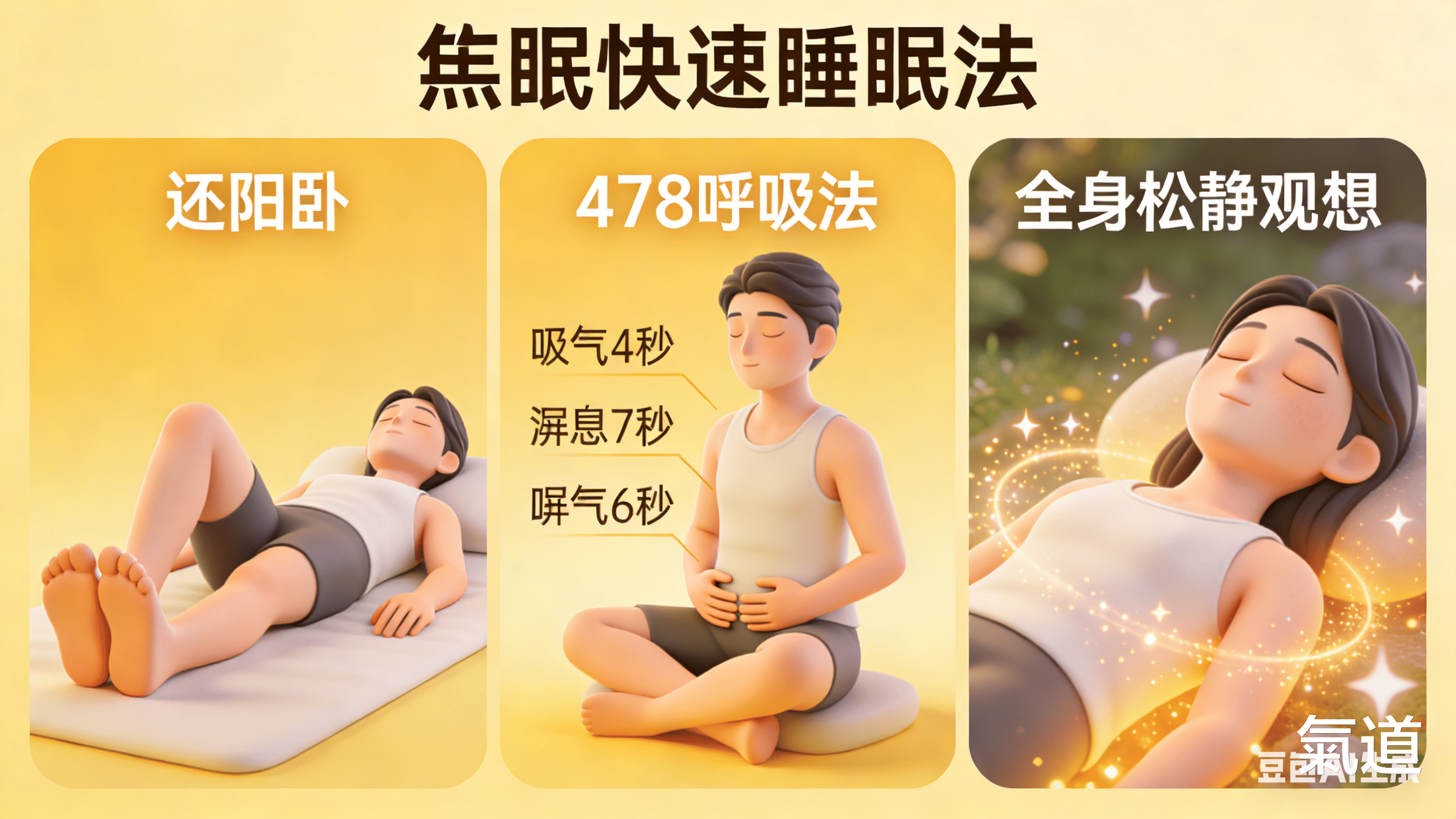 2. 478呼吸安神法(3分钟):简化版气功呼吸,快速压下兴奋