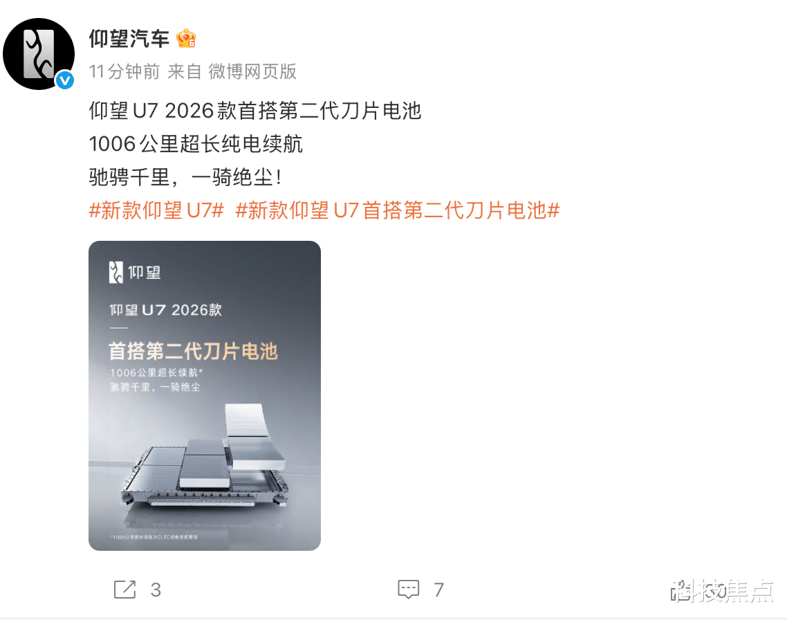 官宣了,比亚迪将于3月5日举办第二代刀片电池暨闪充技术发布会,2026款仰望U7首发搭载第二代刀片电池,据悉直接搭载150度电,还把性能、续航和快充一起拉满,纯电ev不可能的铁三角实现了!妥妥的目前最强的纯电旗舰轿车!