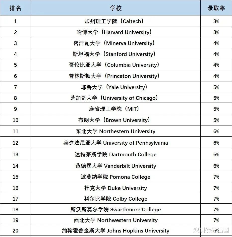 ▲ 2026年美国最难申请的大学TOP 20