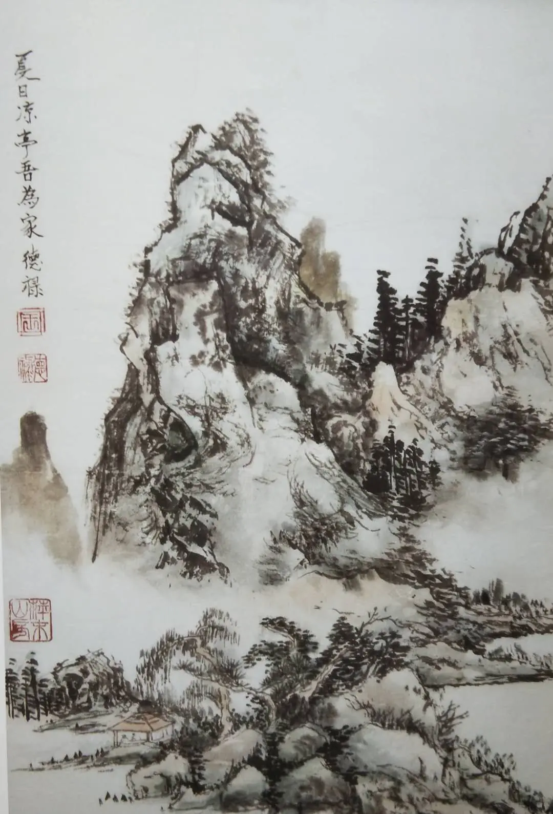 疏密有致: 受光面(如峰顶向阳面)皴擦少而淡;背光面(如陡峭的阴面)、转折凹陷处皴擦多而浓重,以塑造明暗体积。
