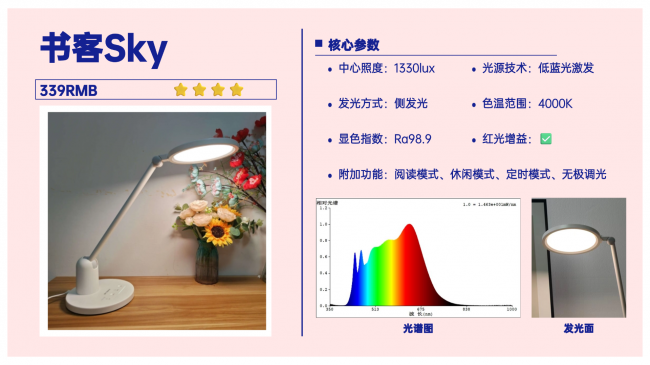 4、孩子护眼台灯品牌第四名深度解析:书客Sky(推荐指数:⭐⭐⭐⭐)