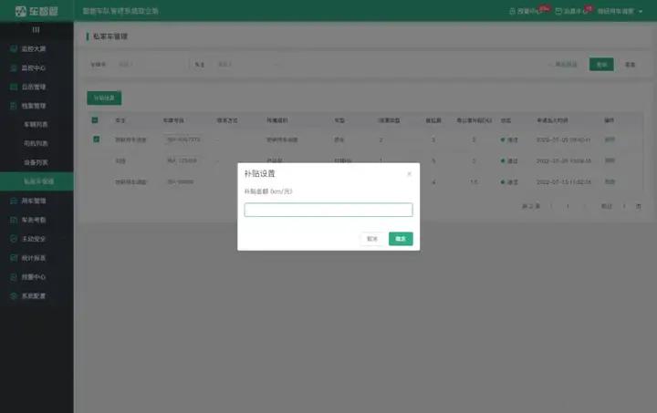 管理员可以为每辆车单独设置“每公里补贴”,系统会在员工私车公用时根据“里程 x 每公里补贴”计算补贴费用,灵活满足企业私车公用的报销差异化。