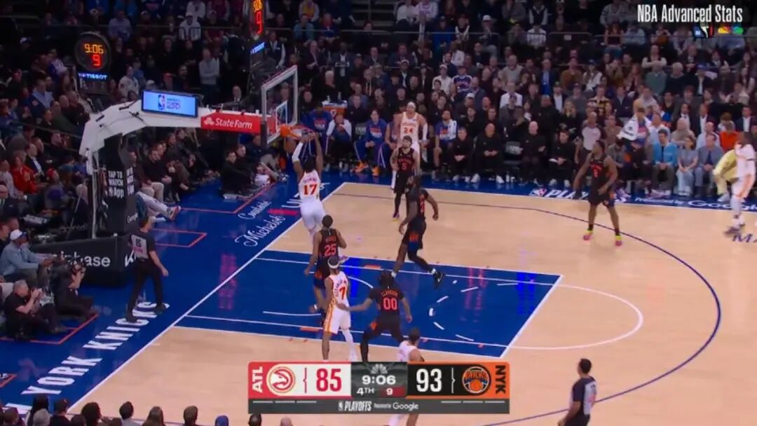 ——剩下3分44秒前,大帽布伦森的上篮