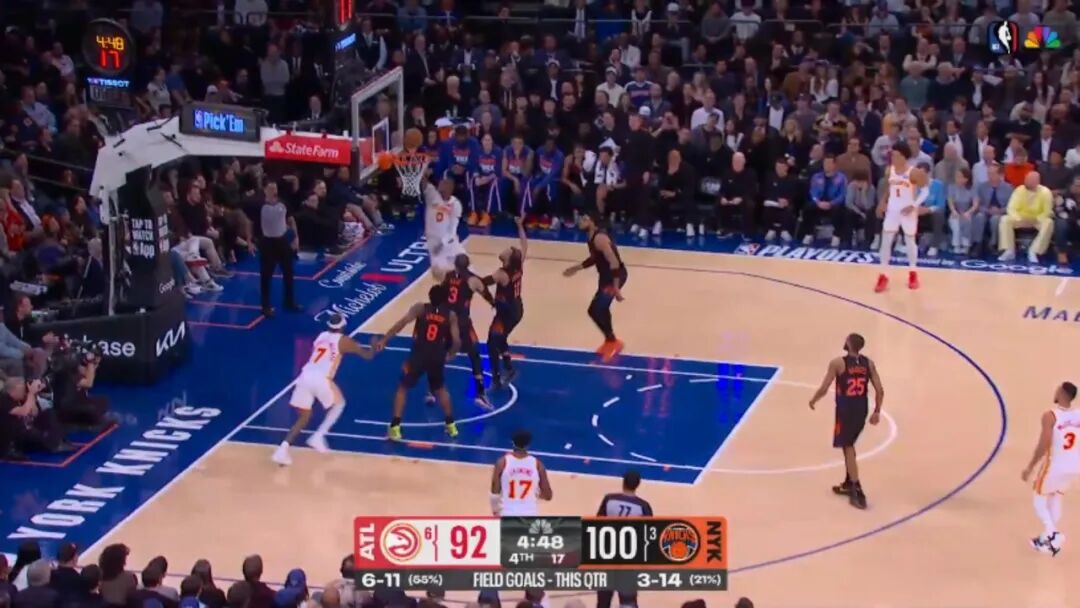 ——剩下4分46秒前,强吃布伦森的一记上篮,这也是老鹰反击的开始