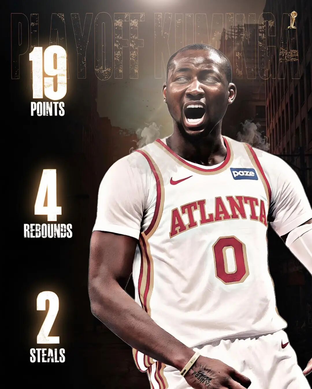 除了麦科勒姆,本场老鹰还有一位存在感极强的球员,他的发挥是老鹰能逆转取胜的关键,而他甚至还不是老鹰首发——没错,我们说的就是库明加。