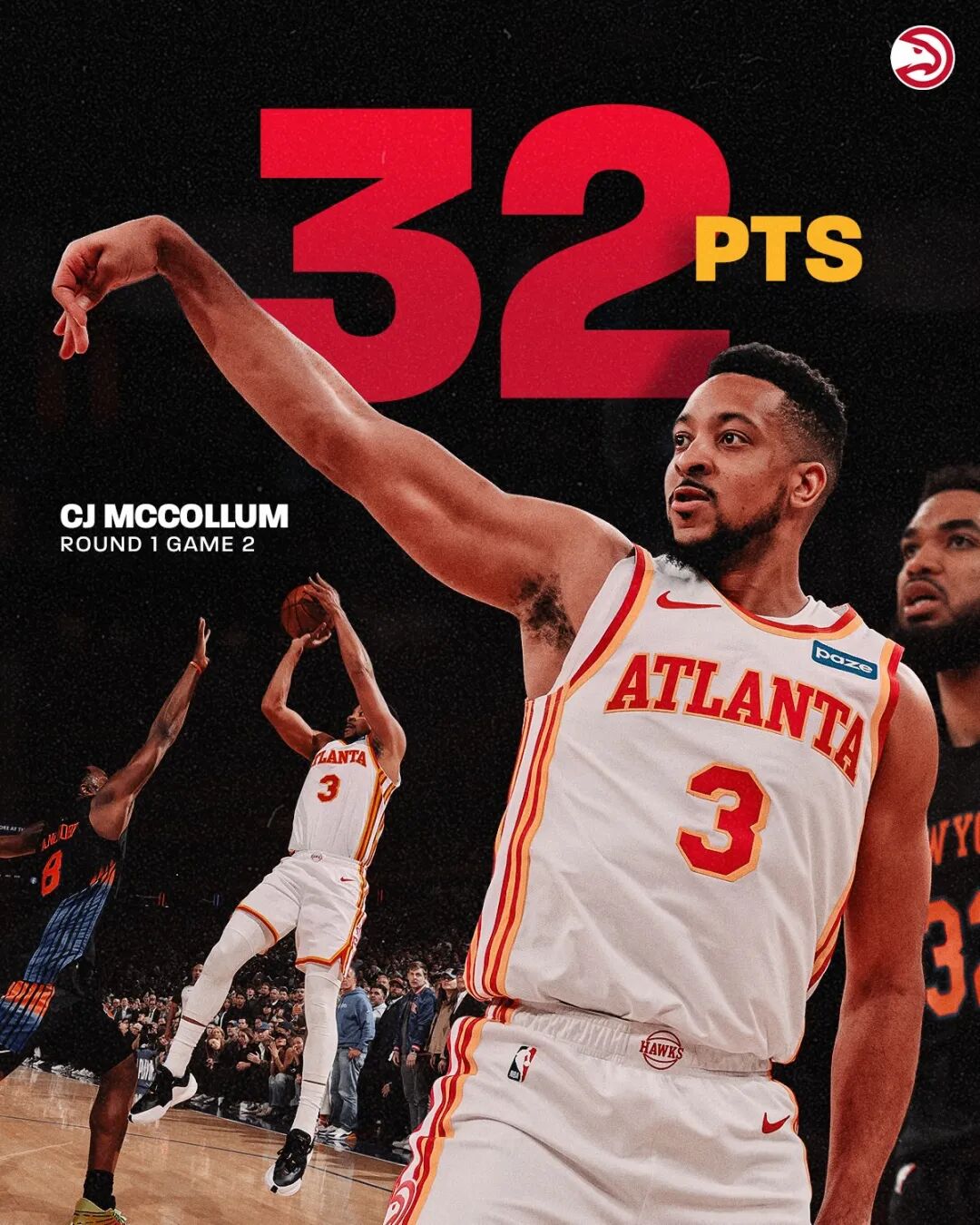 34岁老将CJ麦科勒姆成为球队最大功臣,全场22中12,三分10中3,罚球7中5,拿下32分3篮板6助攻2抢断,其中第四节最后5分钟,麦科勒姆一人拿了6分1助攻,带队逆转。