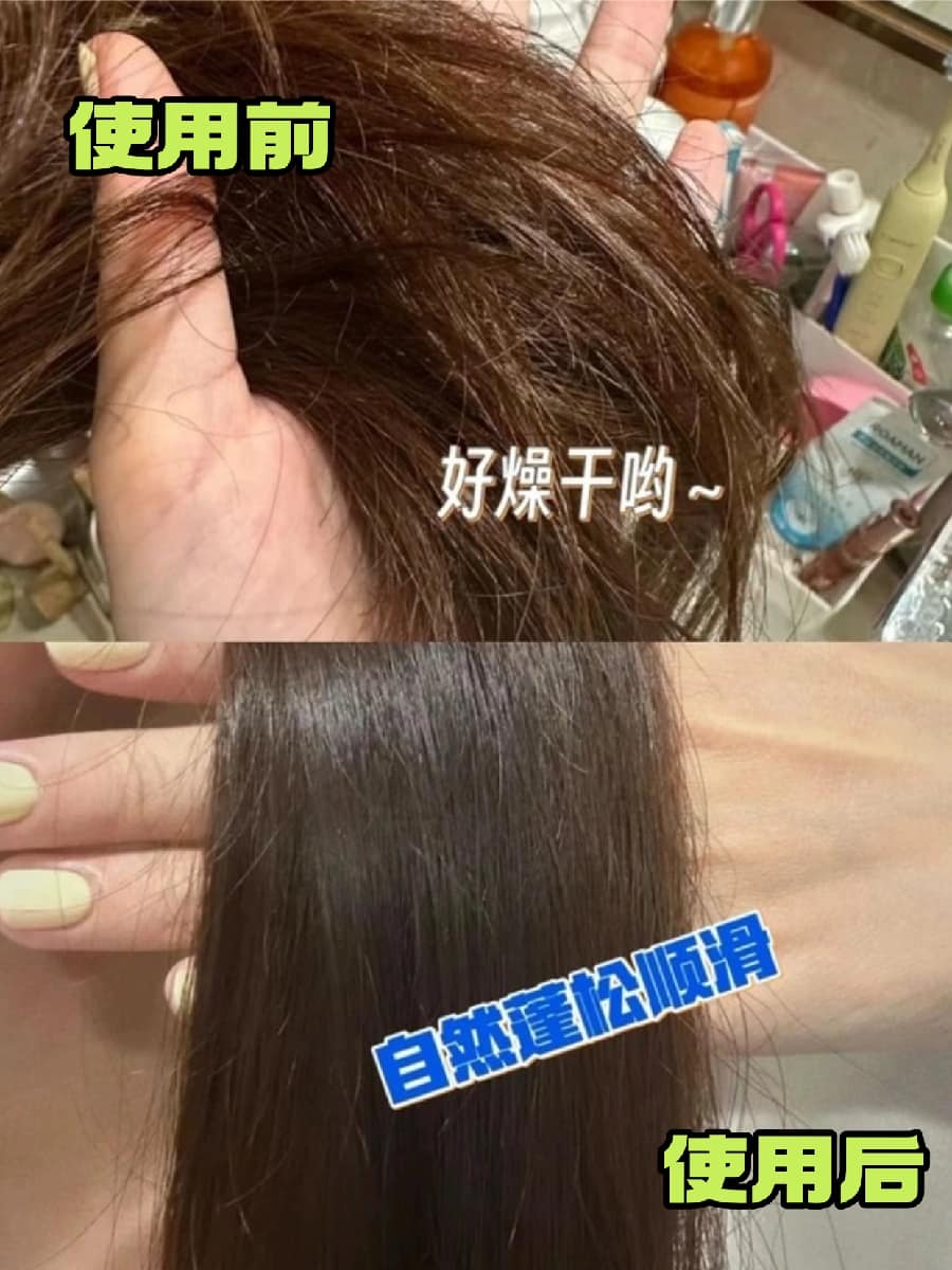 枯发有了明显改善一点不夸张,直接改善了我烫染后头发干枯毛躁、细软塌还爱起静电的老毛病。它采用 “修护 + 保湿 + 柔顺 “三效合一养护技术,打破了普通发膜单维度养发的局限,既能修护受损毛鳞片、填补发丝空洞,又能给发丝补水、重塑纤维,从内部强韧发丝减少断发,还能长效滋润保湿,让头发持久顺滑亮泽又蓬松,秋冬静电也少了很多,对我这种细软塌发质特别友好,在家用效果不输沙龙护理。和我之前用过的其他发膜比起来优势很明显,使用后顺滑度提升 97.39%,蓬松提升 87.37%,光泽提升 95.49%,发丝断裂减少 55.55%,分叉打结减少 43.71%,日常养护选它真的很省心。