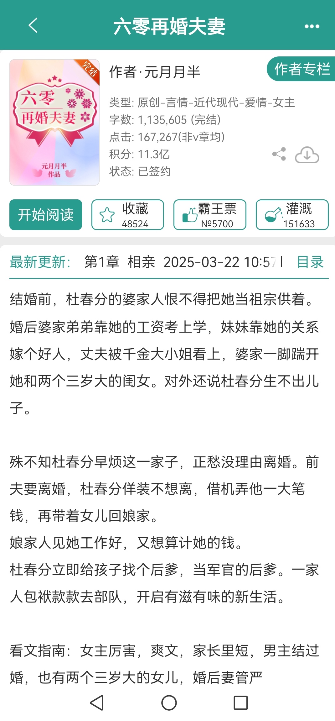 老作者的文果然有保障,女主的人设很可!女主小时候亲爹为国当情报人员基本没露面,亲妈远走国外,女主从小被爷爷奶奶养大,一婚嫁给了亲二婶的亲戚,结果对方是个陈世美,结婚前家里穷的响叮当,结婚后在女主的补贴下条件越来越好与领导的女儿搞在了一起,女主一点不悲伤带着双胞胎女儿火速离婚。