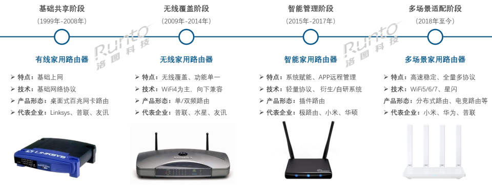 技术演进:多阶段迭代,推动家用路由器功能升级