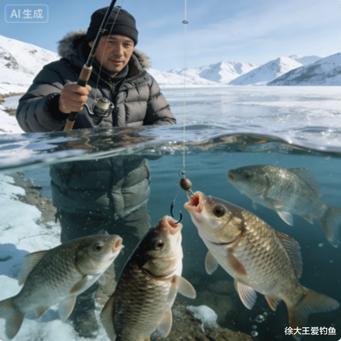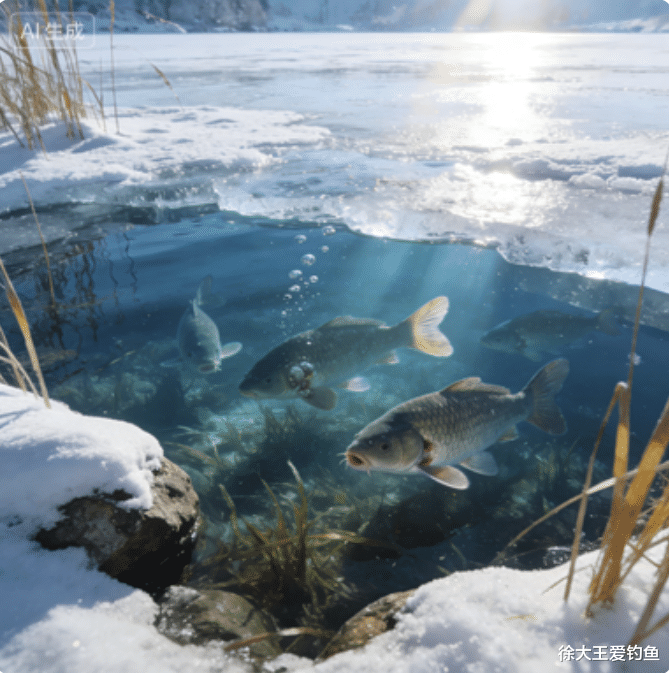 第三个真相:鱼上浮可能是“追逐天然食物”,表层有短暂的“觅食窗口期”。冬季的天然食物本就稀少,晴天阳光照射会让水生昆虫、浮游生物从深层游到表层(这些生物也偏爱温暖、溶氧足的区域),鱼会跟着食物上浮追逐觅食。这种情况下的鱼上浮,是“主动觅食”行为,也是最容易出钓的时机,但窗口期很短(一般30-60分钟),食物被吃完后,鱼就会退回深层。判断技巧:若看到鱼上浮时伴随“翻花、吐泡”,且水面有轻微的波纹(昆虫活动的痕迹),就是追逐食物的信号;若鱼只是安静上浮、缓慢游动,大多是适应水温或寻找溶氧,觅食欲望低。
