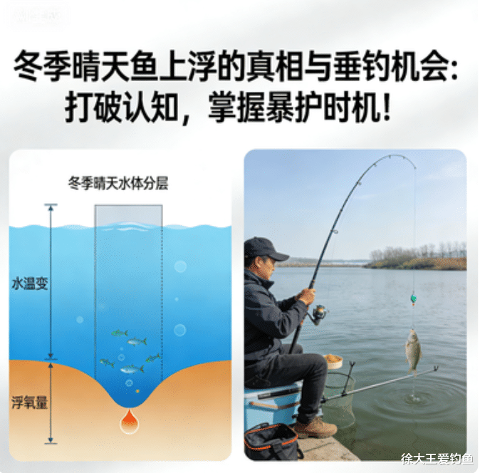冬季钓鱼,大家都知道“晴天是黄金时机”,可很多钓友却遇到过这种尴尬:明明是大晴天,还亲眼看到鱼在水面上浮游、翻花,可下竿后浮漂却纹丝不动,空竿而归。于是就有了“冬季晴天鱼上浮=没口”的说法,不少人遇到这种情况就直接收竿,错失了爆护的机会。其实,冬季晴天鱼上浮不是“没口信号”,反而藏着鱼的活动规律,只是很多人没搞懂背后的真相,找错了垂钓思路。今天就把冬季晴天鱼上浮的真相拆透,再教你如何抓住对应的3个垂钓机会,打破认知误区,让晴天鱼上浮不再是“空竿预警”,而是爆护的前奏。