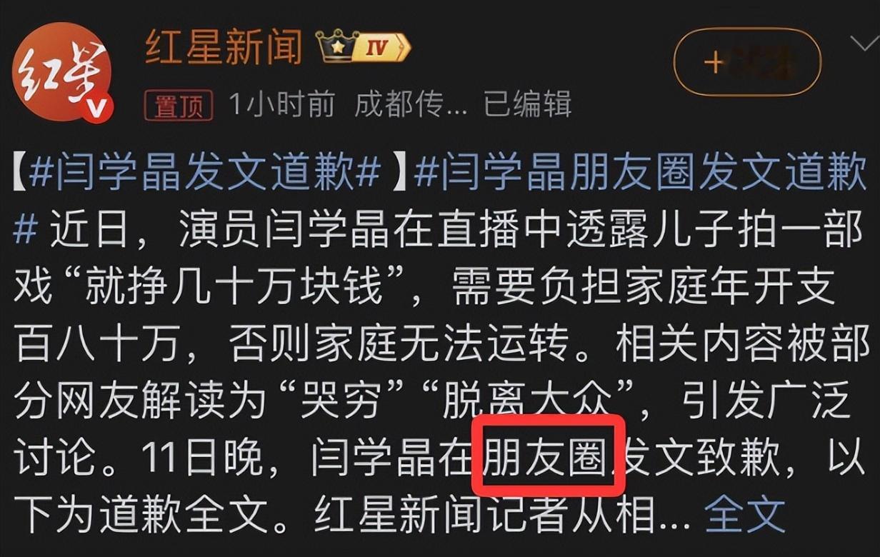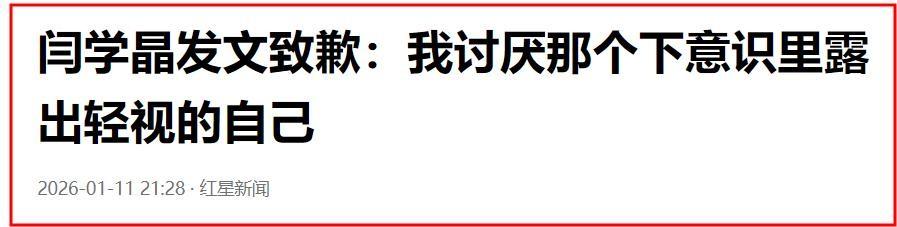 从“国民媳妇”到“酸黄瓜”,国家一级演员闫学晶总算是认怂了,2026年1月11日晚,她在朋友圈发了一封致歉信。