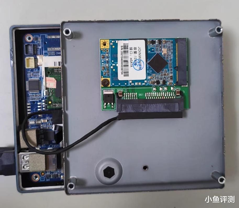 当然缺点也要讲清楚,板载32G装完系统只剩20G左右,装飞牛没问题,但想存片必须加硬盘,主板上有一个20pin的SATA一体线接口,支持扩展2.5寸硬盘,原厂不带线,得自己买,十几块钱,动手能力弱的可能会觉得麻烦。另一个是内存小了点,跑Windows肯定慢,但4G跑飞牛足够,但你不可能拿它开十几个Docker。