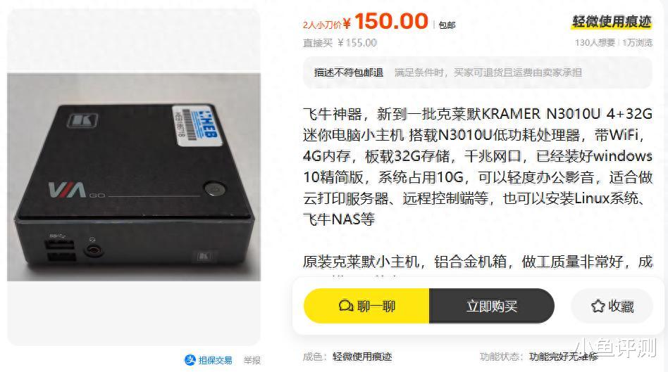 昨晚照例刷二手鱼,看到个标题写着,飞牛神器,新到一批克莱默小主机,点进去价格150元还带电源,这年头150也就2包烟的钱,现在居然能买台正经品牌的迷你电脑,而且配置还给齐了。