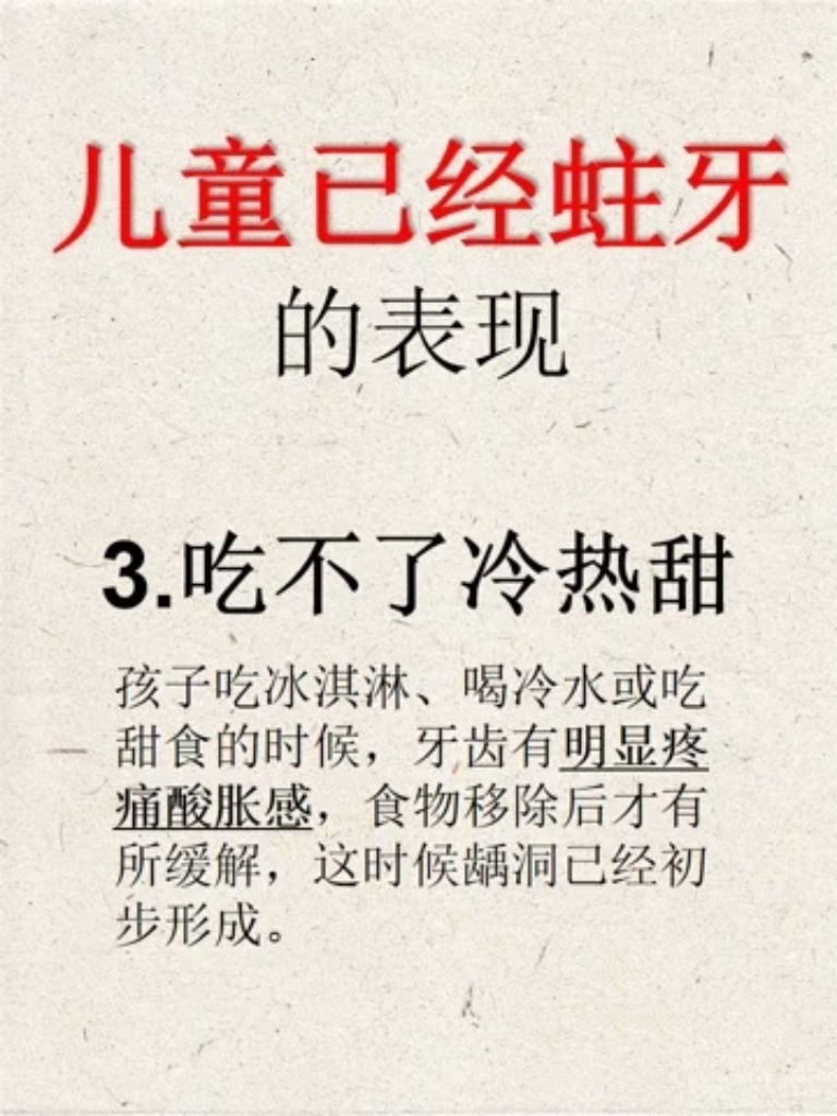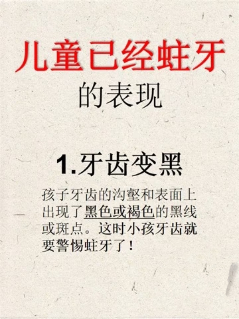 这是最直观的信号。如果牙齿表面出现刷不掉的黑点、黑线或黄褐色斑块,别犹豫,那就是蛀牙的“身份证”。还有一种更隐蔽的,是牙齿表面出现哑光的白垩色斑块,这说明牙齿已经开始脱矿,正在“蛀牙”的边缘疯狂试探!