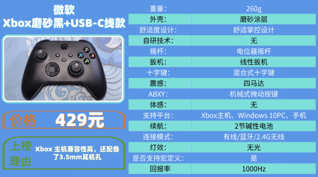 9、微 软X box磨砂黑+USB-C线款游戏手柄