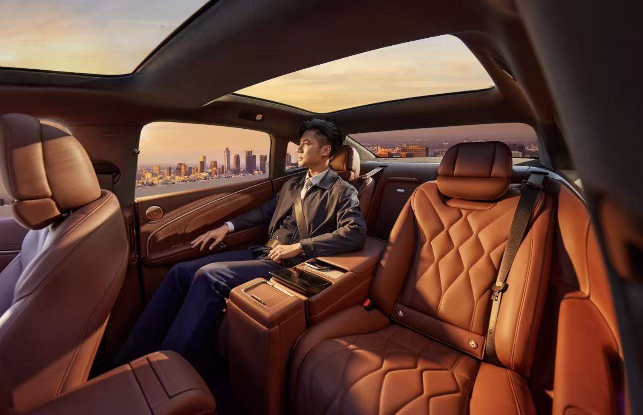 昊铂A800采用“前后双环抱”设计布局,兼顾驾驶乐趣与乘坐舒适。史上最长的6536毫米月晕氛围灯带,打造沉浸式空间体验。30年花曲柳木饰板搭配超柔Nappa真皮,融汇东方美学与现代科技。此外,2+1变形座椅(带智慧中岛)、零重力副驾、机械按摩座椅、三温多控智能冰箱、悬浮式双层遮阳帘、23扬声器旗舰音响等高端配置,覆盖商务、家庭多种场景,让豪华更具温度。