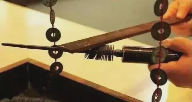 经过浇铸后形成钱胚,需要逐一进行摘断磨锉加工。锉钱即是将铜钱边缘用矬具进行打磨平滑的过程,古钱币锉钱边缘都是经过顺圆周方向切削加工,使成品显得自然、得体。