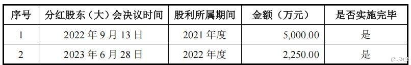 公司2025年4月28日召开第一届董事会第八次会议、2025年5月19日召开2024年年度股东会,审议通过《关于公司2024年度利润分配预案的议案》,以当时公司总股本7,500万股为基数,以未分配利润向全体股东每10股派发现金红利4.00元(含税),共计派发现金红利3,000.00万元,已于2025年7月1日实施完成。而此前的2022年和2023年公司分别进行了一次现金分红,分红总额达7250万元,故报告期公司分红超1亿元。