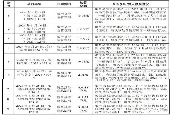 报告期内,申兰华未受到过行政处罚,子公司银川百泓共受到9项行政处罚。此外,2019年和2020年银川百泓因水污染和气固废污染被要求整改。