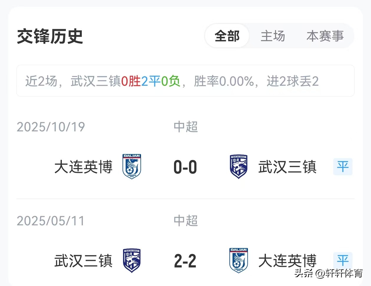 综合来看武汉三镇坐拥主场之利,求胜欲望强烈但中场组织能力受损,进攻效率存疑,大连英博拥有更成熟的进攻体系,以及斯坦丘这样的核心球员,反击威胁不容小视,但英博客场稳定性始终是存在隐患的,结合以上内容双方大概率以平局收场,各取一分的结果是大家都能够接受的,对于两支球队而言避免两连败稳住开局态势,远比一场冒险的三分更重要。