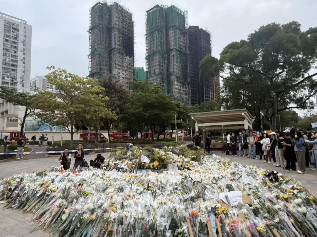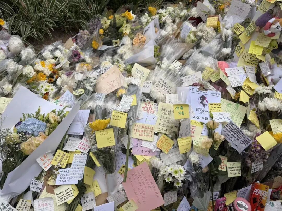 災情發生後,市民紛紛到香港大浦宏福苑寄托哀思