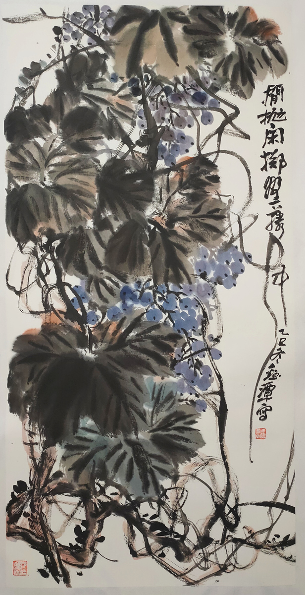 这便是他技法的高明:以传统写意的苍劲为骨,裹生活烟火的温软为魂。墨色的浓淡是情的深浅,线条的疾缓是神的呼吸。抬眼处,桃有暖,葫有安,鹰有劲,荷有柔,便懂了——他的画是墨裹的烟火,是笔织的草木情,让每个眷恋生活的人,都能在这浓墨艳色里,寻到一息可以栖居的清欢。