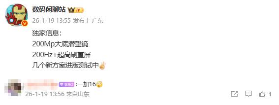 继近日有数码博主曝光了一加16(暂命名)系列将带来的三款机型的型号之后,日前,又有数码博主曝光了另一款新机的部分亮点配置信息。从曝光的信息看,该机在影像和屏幕方面很可能将有更大的提升。而结合此前曝光的信息和该条爆料微博评论区网友的热议来看,该机很可能来自 @一加手机 甚至可能用在一加16系列上。
