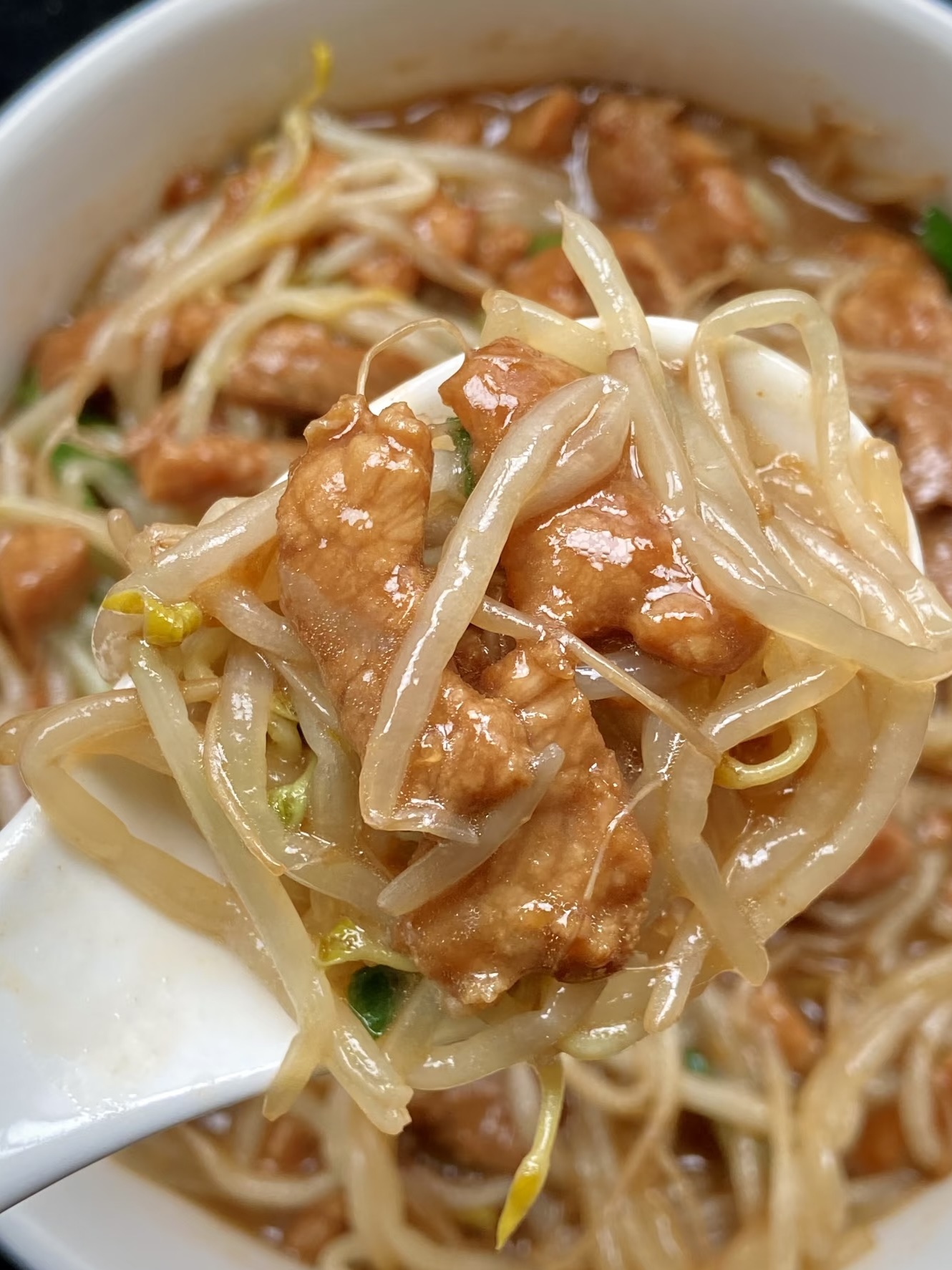 刚出锅的豆芽炒肉,热气腾腾,豆芽的脆、肉片的嫩、青蒜的香,三者完美结合,每一口都是鲜香四溢。肉片嫩滑,豆芽脆爽,青蒜提香,再加上蒜香和酱油的加持,这道菜简直是米饭的绝配。夹一筷子,豆芽的清脆和肉片的嫩滑在口中交织,让人忍不住一口接一口,根本停不下来。