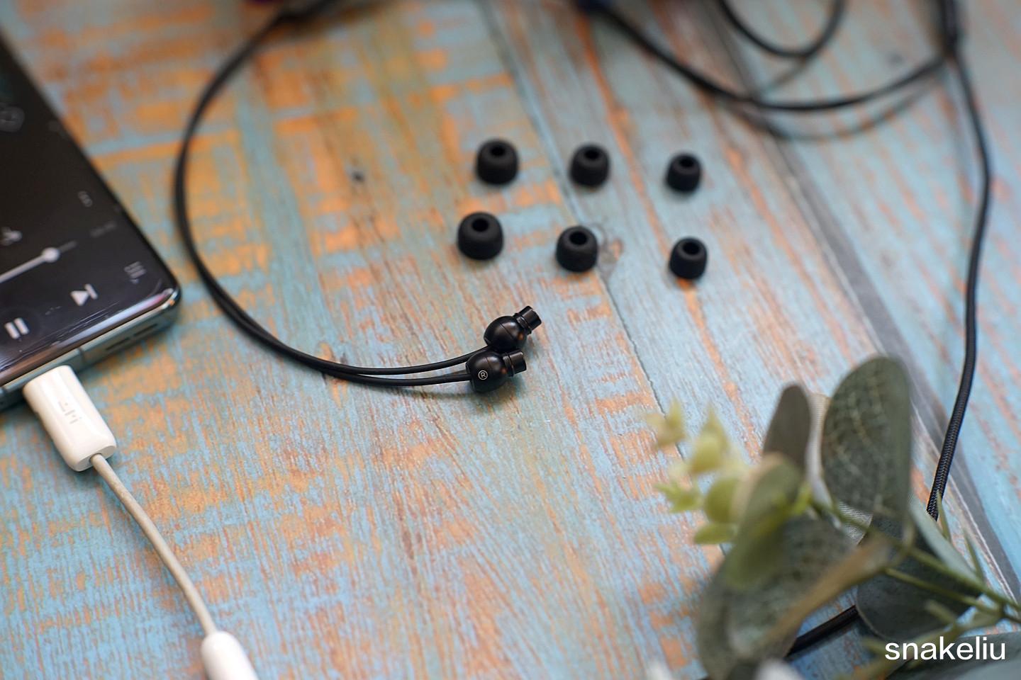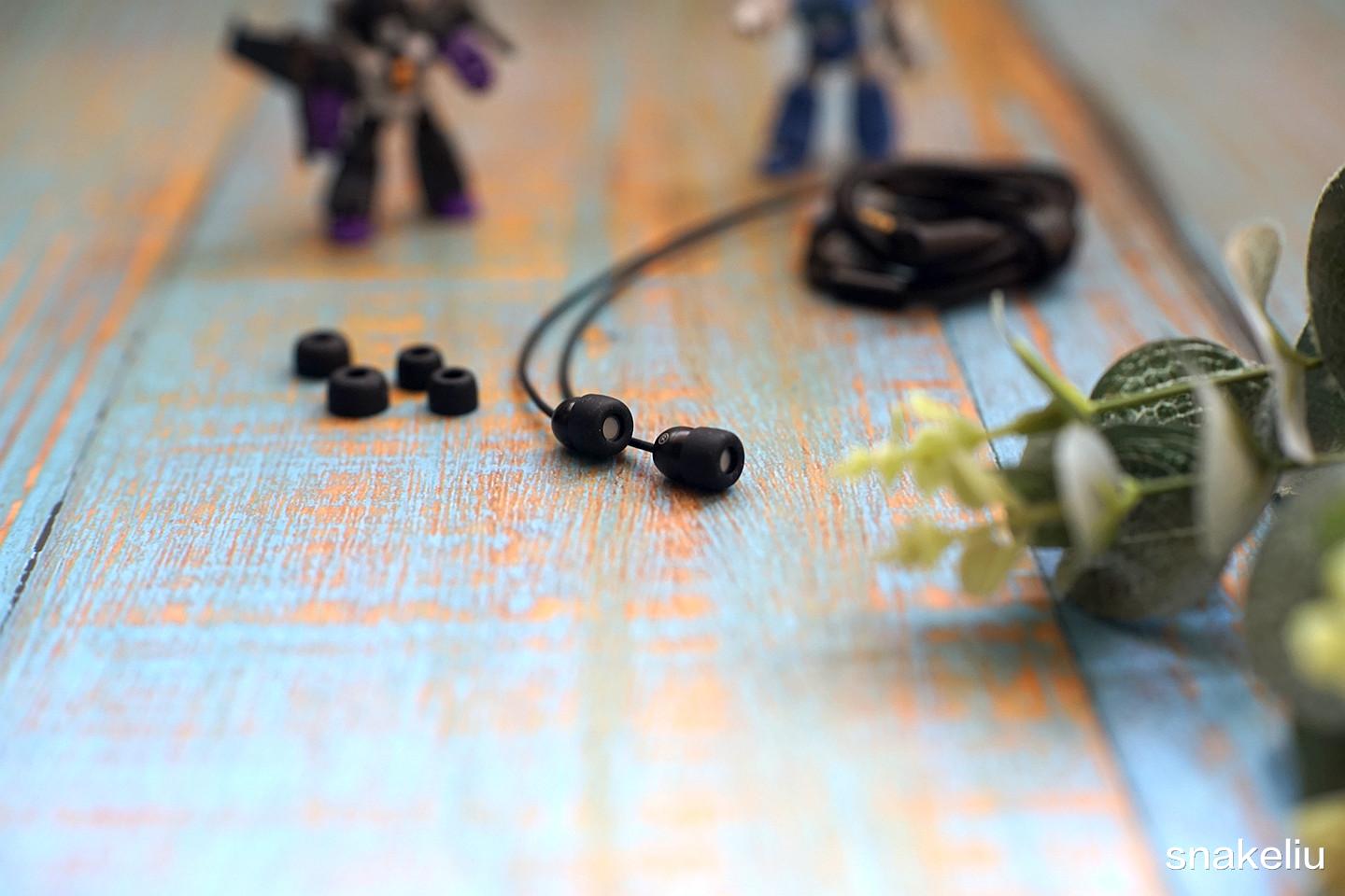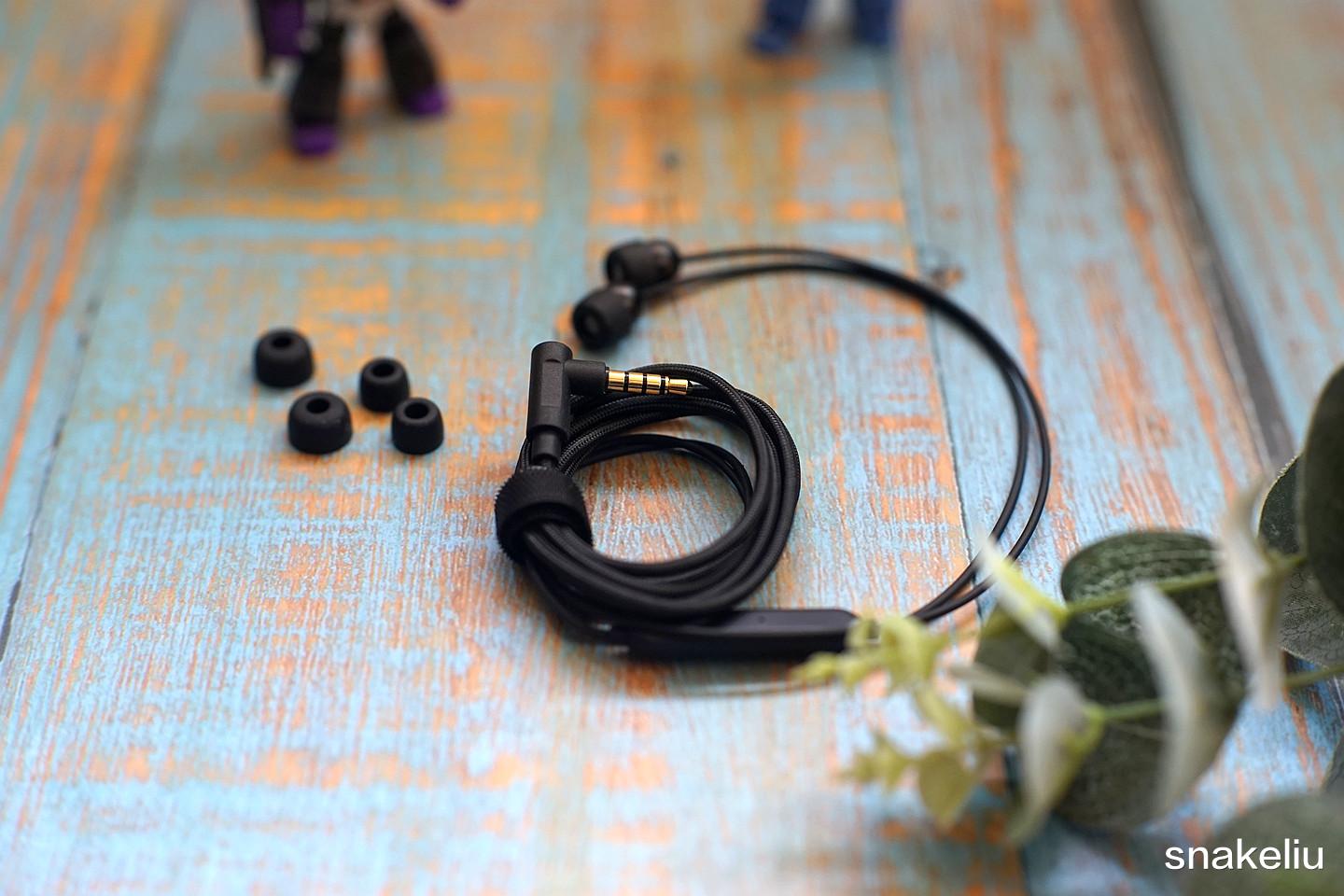 耳机是有线设计,没有错就是有线设计。不是蓝牙无线耳机,这样的好处自然是不用充电,也不会担心突然没电。对我来说有线设计也是可以接受的,可以让我换一个思路听音乐。这款耳机是入耳式设计,所以除了说明书,还配备了一共三副不同大小可替换耳帽。