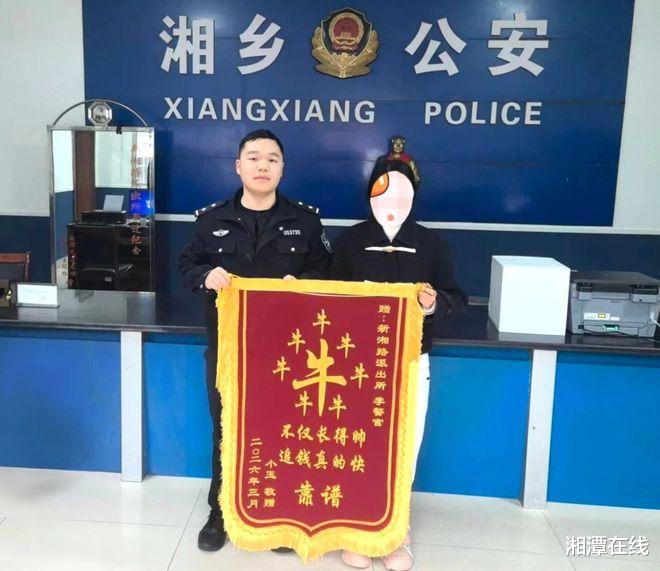 从群众报警到钱款全额追回,警方高效处置、暖心服务,让深陷困境的大学生倍感温暖。为表达谢意,他专程来到新湘路派出所,送上一面写有“牛!不仅长得帅,追钱真的快,靠谱!”的锦旗。简洁风趣的文字,既点赞了民警的办案效率,也饱含着对公安工作的真心认可。