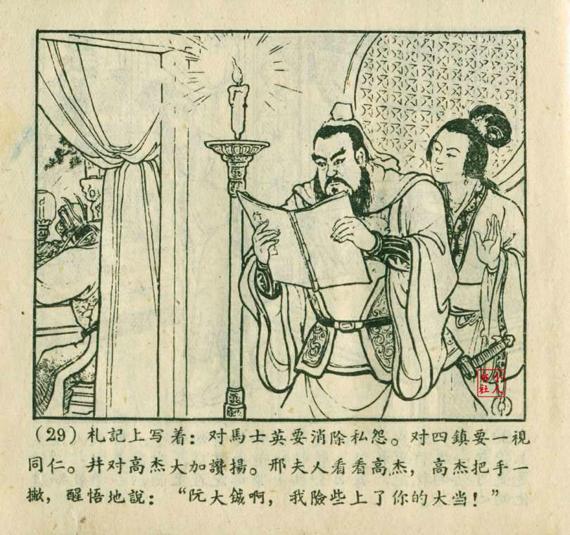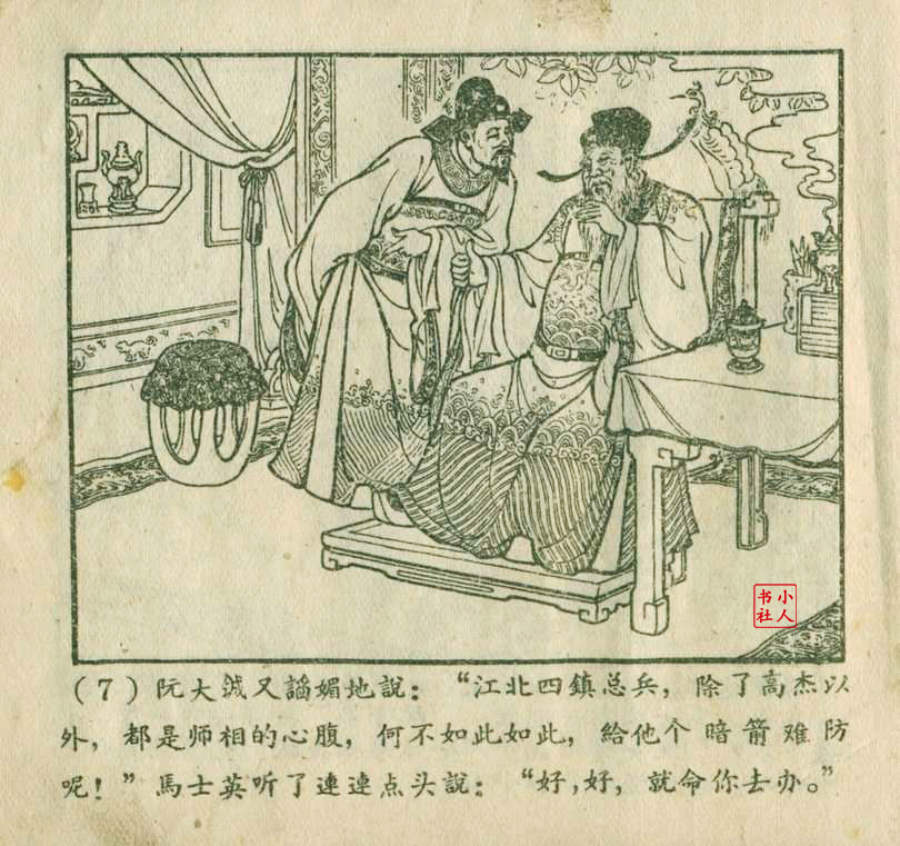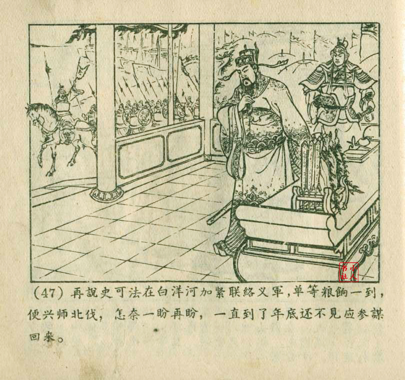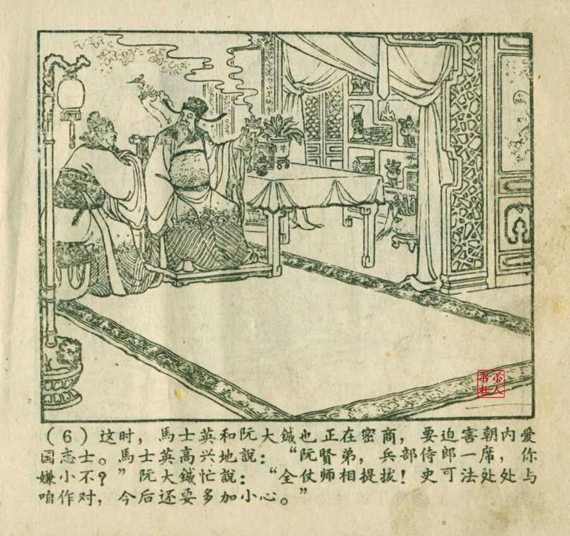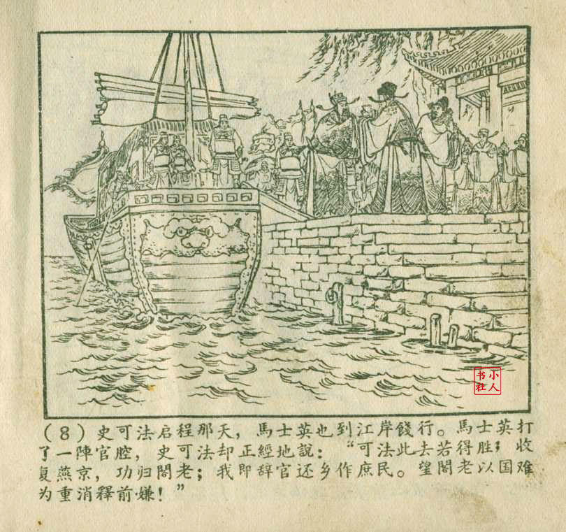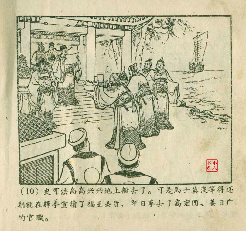 朱元红是天津人民美术出版社上世纪50年代至80年代的连环画画家,主要参与《聊斋志异》系列连环画的创作。他与赵三岛、严绍唐合作绘制了《马骏飘海》(即《罗刹海市》的早期版本),该作品于1957年出版,它以《聊斋志异》故事为蓝本,采用工笔重彩技法,展现了古代商人的奇幻经历。50年代的连环画多采用写实风格,强调传统技法与普及性,朱元红的参与体现了当时连环画创作对传统绘画技法的继承。其作品风格与王亦秋、叶毓中等画家有相似之处,注重疏密对比和器物造型的写实表现。