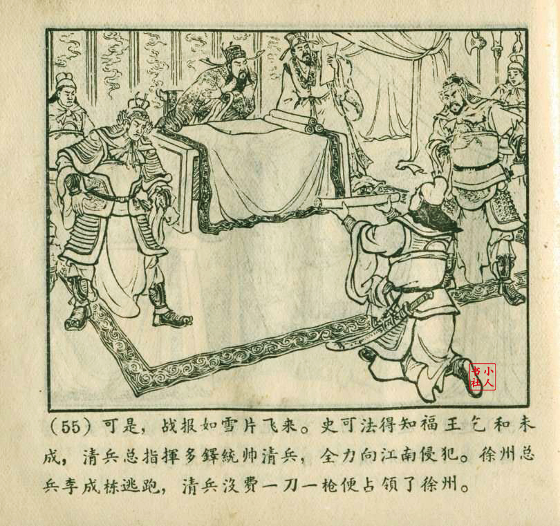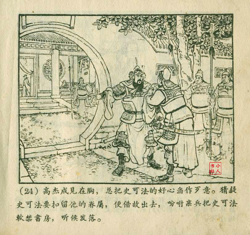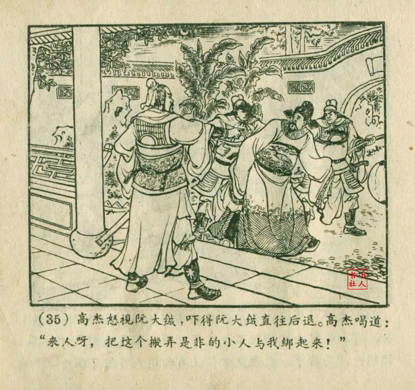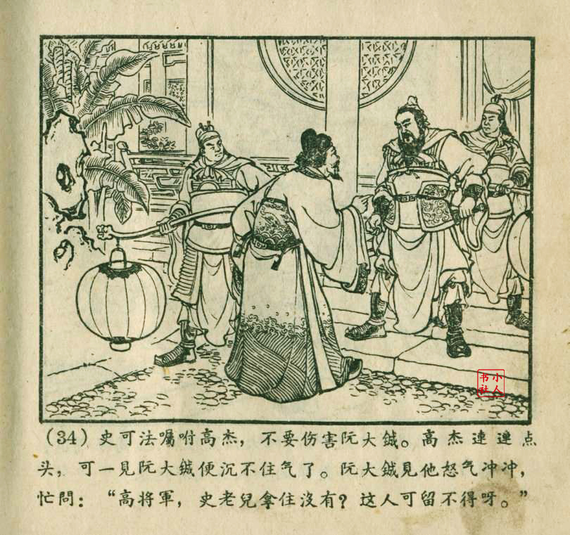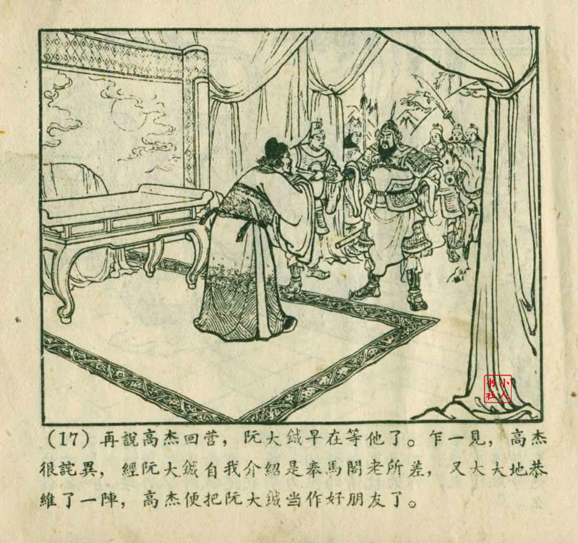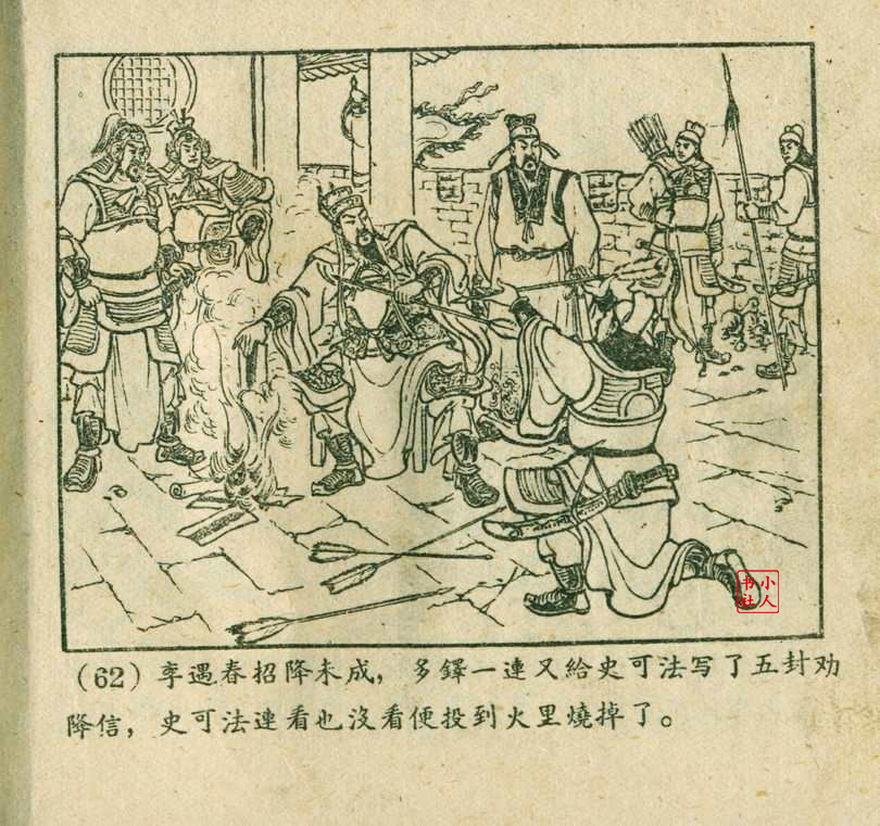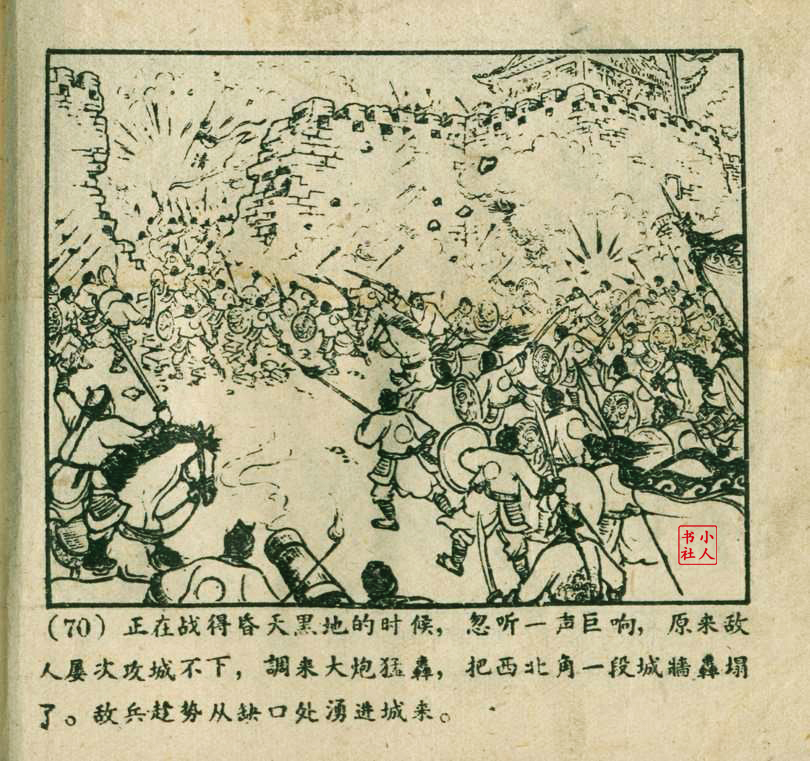 李铁生,生于1913年11月,江苏江宁人,笔名金戈,初中文化程度,自学美术出身的连环画家。1928年起在报馆担任排字工期间坚持自学绘画,1932年通过首部作品《痴婆子》开启创作生涯。1934年根据美国电影改编的“泰山”系列连环画使其声名鹊起。1953年,李铁生进入新美术出版社工作,参与绘制新美术出版社发行的《牛郎织女》连环画。1956年在合并后的上海人民美术出版社担任连环画创作员。由于在解放初期经过连环画学习班的系统学习,他的绘画技巧及技法有了大幅提高,树立起独树一帜的风格,笔锋犀利硬朗,画面紧凑有序。由于技艺的熟练深厚,他几乎参与了上美社(含新美术出版社)所有套书的创作,《包公》故事中的《黄菜叶》;《儒林外史》中的《严贡生》;《三国演义》中《煮酒论英雄》、《战官渡》、《反西凉》、《姜维献书》(与严绍唐合作)、《智取陈仓》(与严绍唐合作)、《白马坡》(与陈光镒分画);《东周列国志》中的《水灌晋阳》;《西汉故事》中的《计复成皋》等等,这在连环画家中并不多见,以此也说明李铁生的地位和能力。1973年与汪玉山合作完成封笔之作《机警的孩子》。从业四十余年累计创作百余部作品,题材涵盖历史故事与电影改编。