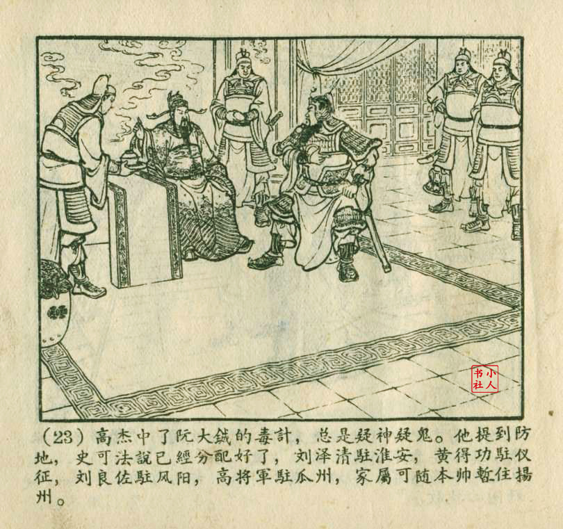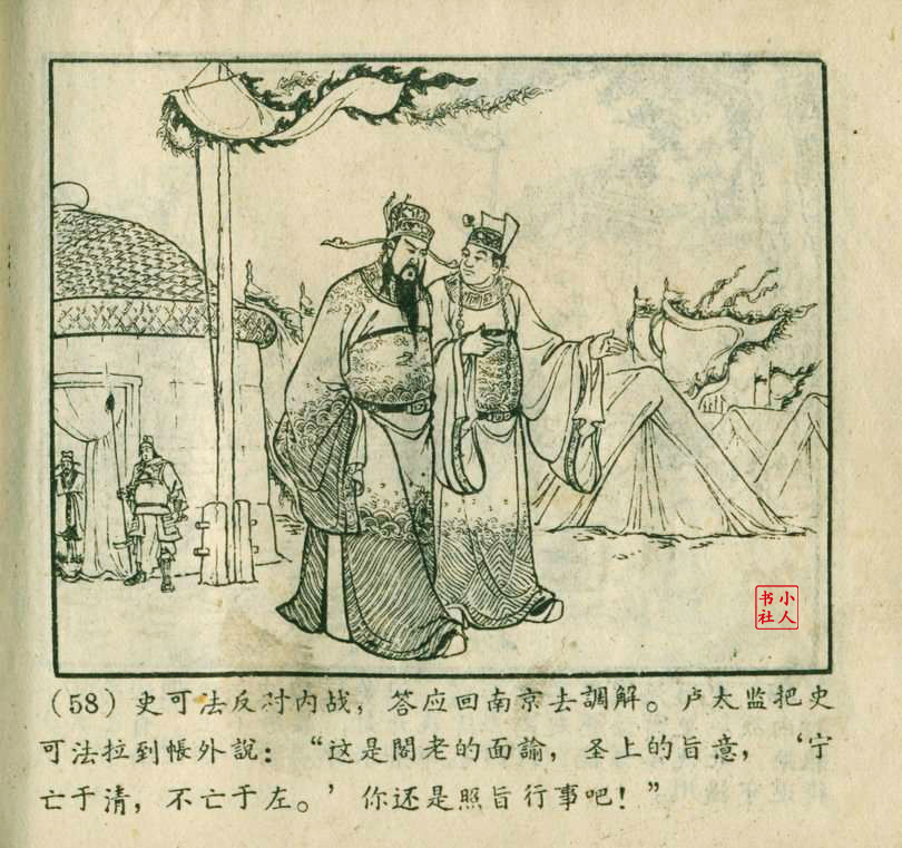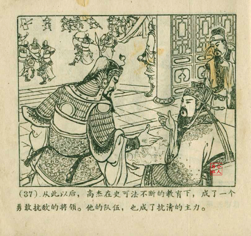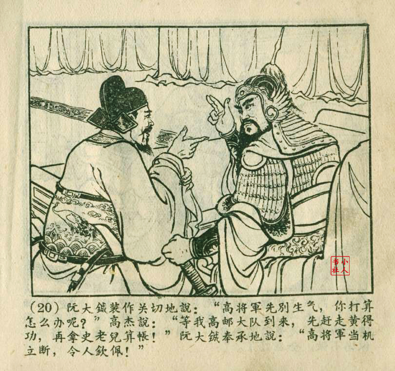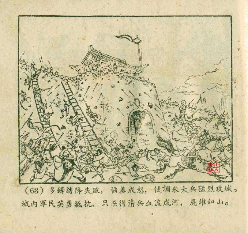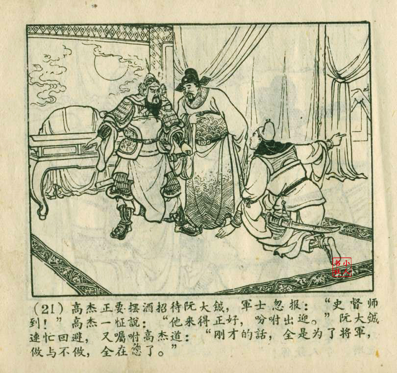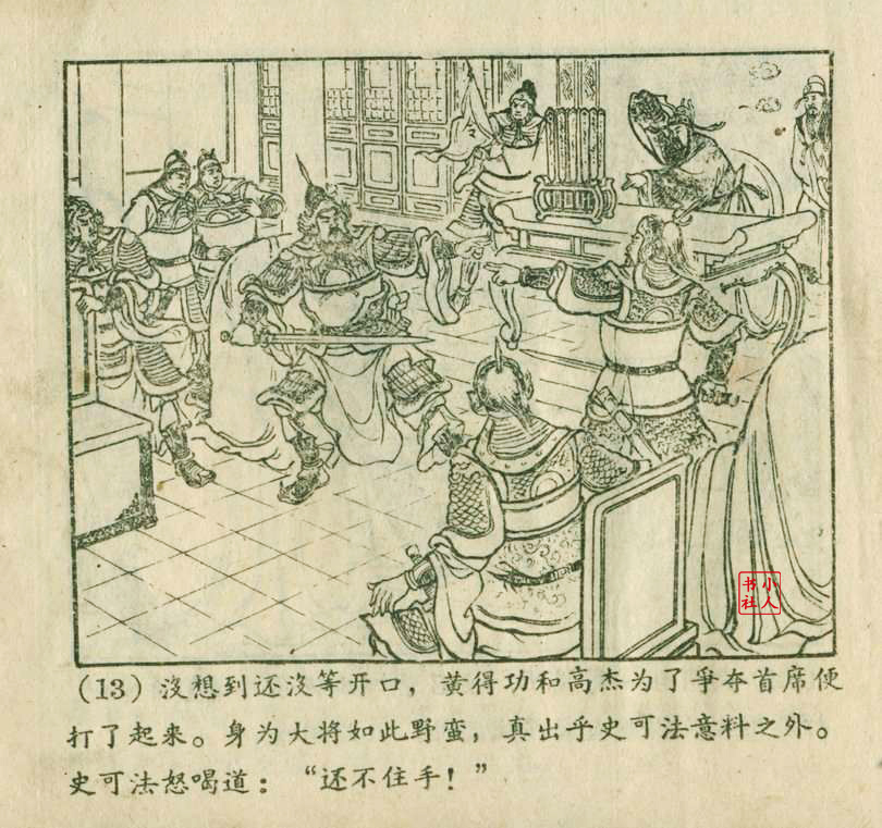 李铁生,生于1913年11月,江苏江宁人,笔名金戈,初中文化程度,自学美术出身的连环画家。1928年起在报馆担任排字工期间坚持自学绘画,1932年通过首部作品《痴婆子》开启创作生涯。1934年根据美国电影改编的“泰山”系列连环画使其声名鹊起。1953年,李铁生进入新美术出版社工作,参与绘制新美术出版社发行的《牛郎织女》连环画。1956年在合并后的上海人民美术出版社担任连环画创作员。由于在解放初期经过连环画学习班的系统学习,他的绘画技巧及技法有了大幅提高,树立起独树一帜的风格,笔锋犀利硬朗,画面紧凑有序。由于技艺的熟练深厚,他几乎参与了上美社(含新美术出版社)所有套书的创作,《包公》故事中的《黄菜叶》;《儒林外史》中的《严贡生》;《三国演义》中《煮酒论英雄》、《战官渡》、《反西凉》、《姜维献书》(与严绍唐合作)、《智取陈仓》(与严绍唐合作)、《白马坡》(与陈光镒分画);《东周列国志》中的《水灌晋阳》;《西汉故事》中的《计复成皋》等等,这在连环画家中并不多见,以此也说明李铁生的地位和能力。1973年与汪玉山合作完成封笔之作《机警的孩子》。从业四十余年累计创作百余部作品,题材涵盖历史故事与电影改编。