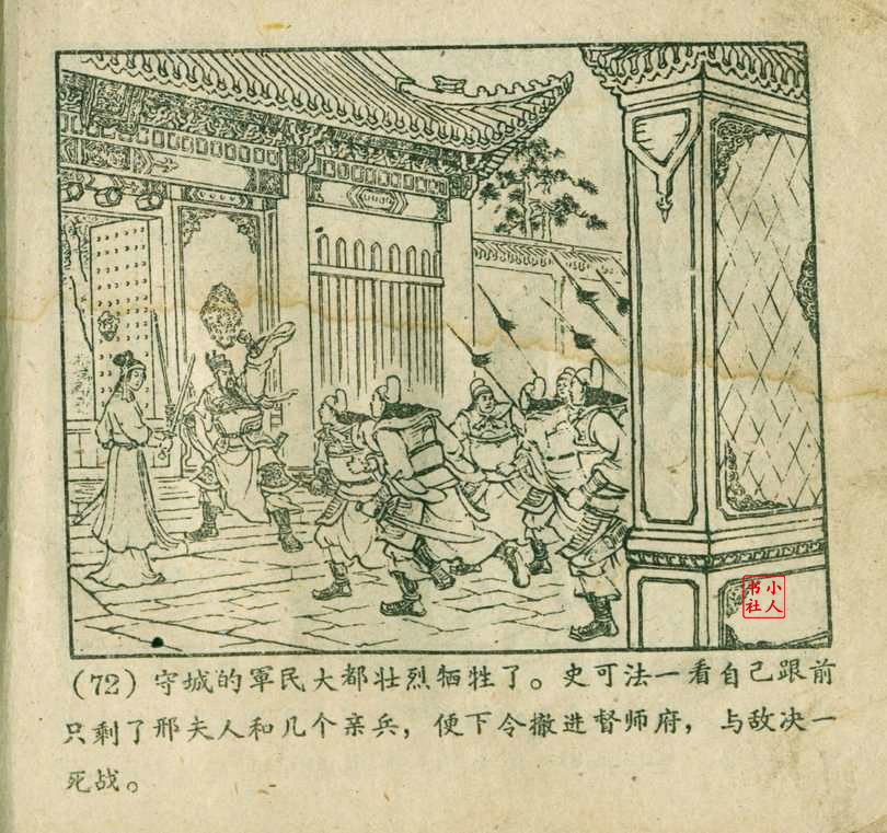 《碧血丹心》连环画是由陈平夫改编,严绍唐、李铁生、朱元红绘画。故事讲述明末时期的民族英雄史可法,为了坚持抗清复明,与投降派阮大钱为首的奸臣权势进行斗争。由于皇帝昏庸,听信奸臣谗言,断绝援兵粮草,终因孤军无援,死守扬州,最后被攻破,史可法杀身成仁,为国尽忠的故事。