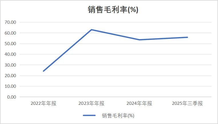 公司尚未发布完整的2025年年报,部分指标以三季报为例:毛利率为55.76%,较2024年的53.43%提升2.33个百分点。