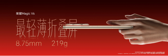 自荣耀Magic V2引领折叠屏进入“毫米时代”以来,轻薄就成为了荣耀折叠的基因。此次荣耀Magic V6折叠形态下薄至8.75毫米,轻至219g,展开状态下的厚度只有4.0毫米,依旧是“最轻薄折叠屏”代名词。