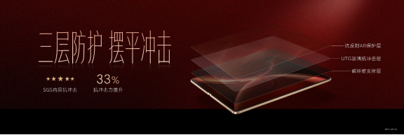 内屏同样有至臻黑钻屏旗舰素质。全新升级超韧UTG玻璃,折痕相比上一代产品改善44%,通过了SGS无感知折痕认证,呈现出仿佛没折的平滑效果。同时,通过碳纤维支撑层、UTG玻璃抗冲击层、抗反AR保护层等三层防护,抗冲击力提升33%,由内到外,可靠属性拉满。