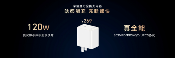 充电方面,荣耀Magic V6标配最新荣耀魔方全能充电器,在新一代氮化镓充电技术加持下,以同类产品中的超小体积,最高可实现120W的超能输出,并可兼容全品牌、全设备的全部主流快充协议。啥都能充,充啥都快。