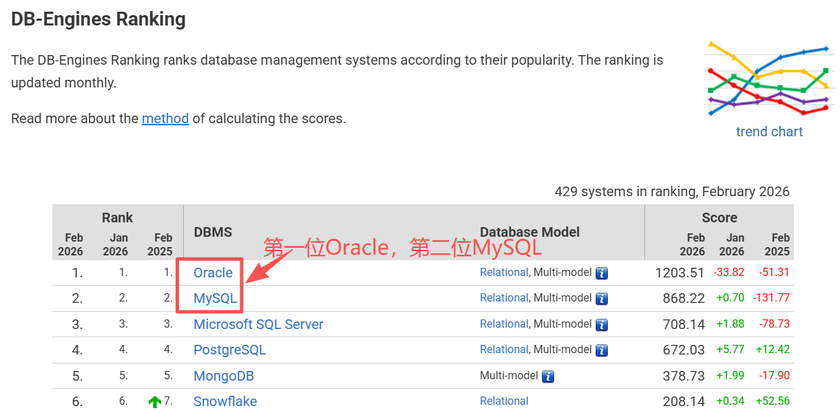 其实回溯Oracle和MySQL的发展,答案已经很明显了最新DB-Engines排行榜中,Oracle和MySQL依然长期占据前列。