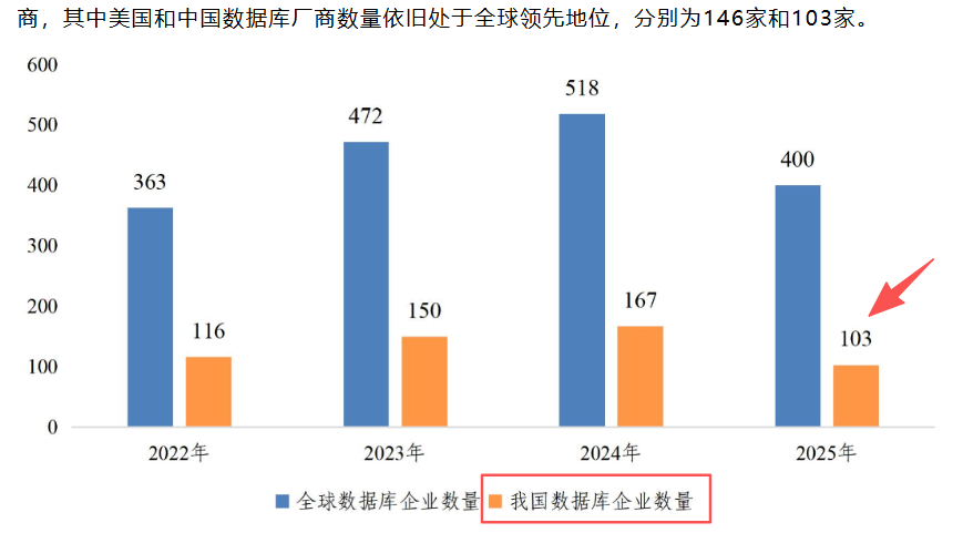 根据《数据库发展研究报告(2025年)》显示,中国数据库厂商数量已经达到103家,数量仅次于美国。